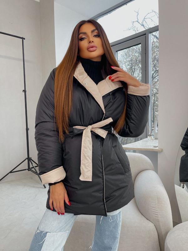 Получали курточку Все кольяра в наличии в количестве Куртка зимняя двусторонняя Модель 30444 Ціна849 Размер оверсайз 42-46 Цвет черный+голубой, черный+беж светлый, черный+малина, черный+мокко, графит+горчица Замеры Ог 120 Рукав от горловины 74 Длина 90см