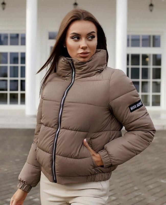 Топовые стильные куртки в наличии в большом количестве по очень хорошей цене! N 601 Ткань плащевка матовая плотная Дорогой подклад с рисунком Наполнитель силикон-200 Размеры: 42; 44; 46 Цвета: черная, кофе с молоком, желтая, розовая, голубая, белая, фиолетовая, морская волна. На рукавах нашивки «шеврони» написи як на фото Цена : 1260 грн
