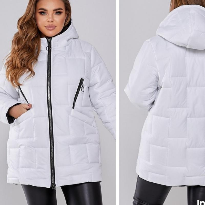 Куртка HS-2672 Размеры: 48-50, 52-54, 56-58 Цвета: черный, мокко, графит, белый, джинс, хаки Ткань: плащевка лака на синтепоне 250 Стильная стеганая куртка прямого кроя, удобный, глубокий капюшон, качественная фурнитура, нашивка Замер: 48-50: ОГ 118 см, ОС 120 см 52-54: ОГ 126 см, ОС 128 см 56-58: ОГ 134 см, ОС 136 см Замеры по изделию Длина: 76/77/77 см Длина рукава от плеча: 61/63/64 см. На модели одет размер 52-54 на тонкую кофту. Параметры модели: 110-86-116 см, рост 171 см Анн
