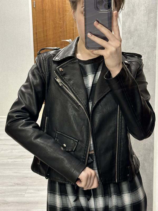 Кожанка в ідеальному стані, без дефектів Довжина рукава 57 Довжина по спині 46 Груди при застібнутій куртці 39