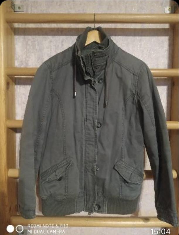 Куртка Деми, унисекс, верх- коттон оливкового цвета, подкладка - х/ б ткань, утеплитель- тонкий синтапон. Размер - L Ширина- 54 Длина- 66 Фирма производитель" Colins".