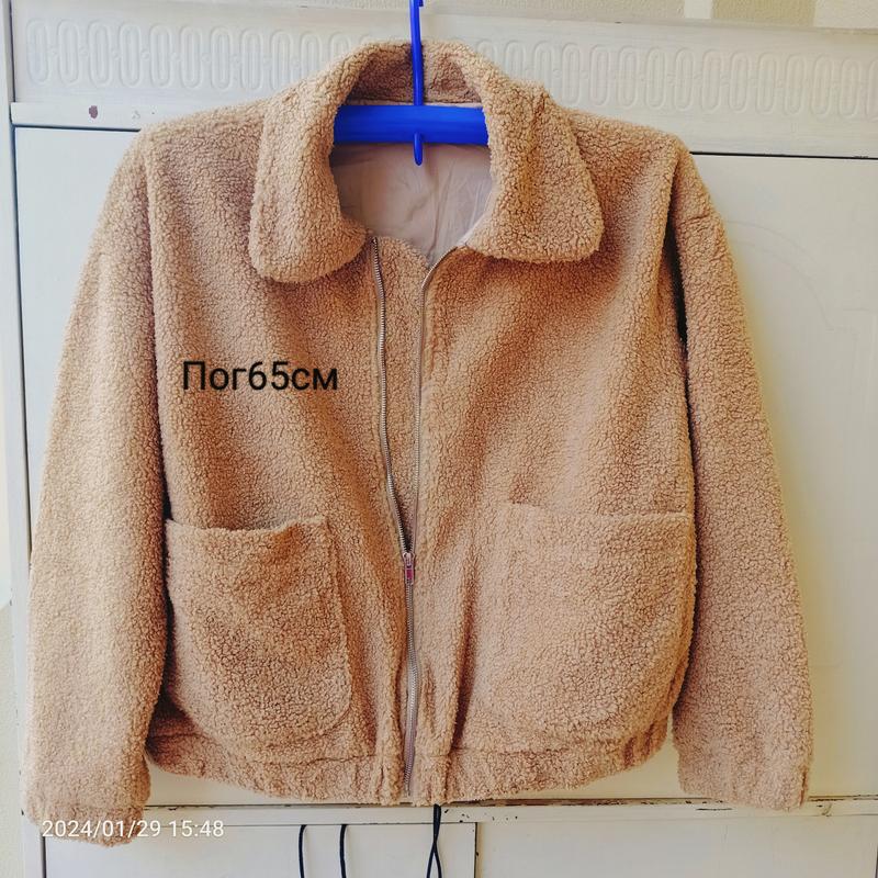 Тедик .Курточка на весну. На подкладке.Стан ідеальний.Не ношена.На молнії. Пог 65см,ПО внизу по резинці 55см, тягнеться до 65см. Довжина 62см, довжина рукава від ворота 75см.