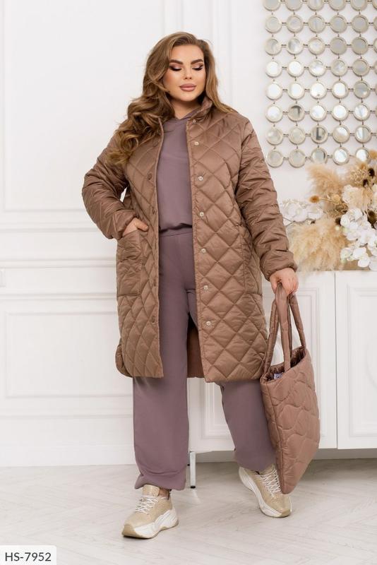 Куртка HS-7952shog25 Цена: 1550 грн. Размеры: 46-48, 50-52, 54-56, 58-60, 62-64, 66-68 2430 Цвет-Синий, Хаки, капучино, зеленый, серый, черный Материал: плащевка лака, Наполнитель-синтепон, силикон 150 (50% силикон 50% синтепон), подкладка (до - 10 з) Ваша любимая модель, уже доступна в новом амплуа. Стеганая куртка средней длины с высоким воротником и длинными рукавами. Изделие застегивается на ряд кнопок на планочке. По бокам объемные накладные карманы. Подол закруглен и дополнен боковыми разрезами. Куртка легко сочетается как в образах спортивного стиля, так и в стилизациях на каждый день. Дополняйте любимым костюмом и кроссовками и образ на любой случай готов! Ориентировочные замеры готового изделия: 46-48 р - р: длина куртки 97/99см, длина рукава от плечевого шва 63см, обхват рукава 36см, ог - 108см, от-108см,oc-114см. 50-52 р-р: длина куртки 98/100см, длина рукава от плечевого шва 64см, обхват рукава 38см, ог - 116см, от -116см,oc-122см. 54-56 р-р: длина куртки 99/1...