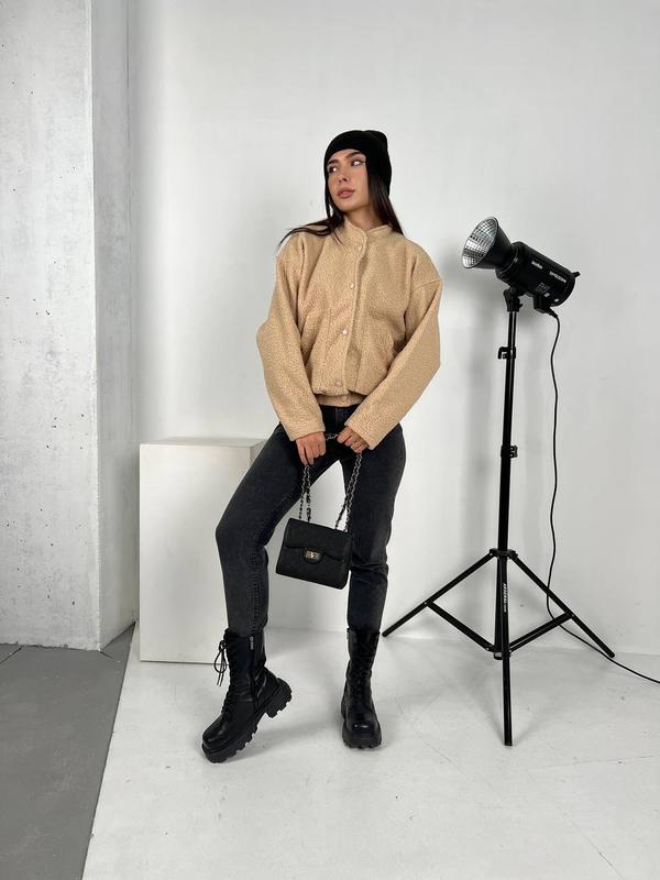 ‼️ ОТРИМАЛИ ‼️ 🔝🔝🔝🔝🔝🔝🔝 Бомбер свободного кроя, на кнопочках, имеет два больших кармана, изготовлен из качественного материала. ▪️Моделька идеально подойдет под дорогой образ. Красиво смотрится с джинсами, юбками любой длины, кожаными и классическими брюками... ▫️Мод 171 ▫️размер : 42-46 ( one size) ▫️ткань : букле - баранчик (не колется, приятная к телу ) ◾️цвет: беж, серый -меланж нест 1185.00 грн ⚪️ ЗАМІРИ ПО ВИРОБУ ОГ -130 Длина -68 Длина рукава-72