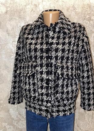 Куртка H&M гусиная лапка Куртка из структурной ткани с воротником и застежкой спереди, а также двумя большими передними карманами с клапаном, под которыми скрыты боковые карманы. Заниженная линия плеча. Подкладка из ткани из полиэстера вторичной переработки. Сезон демисезонная.Стан идеален,без дефектов, в размере С,