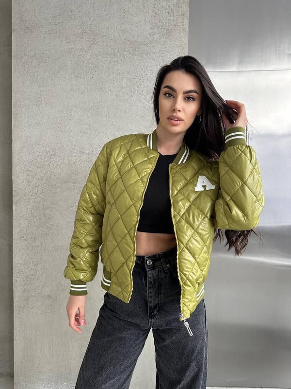 Бомбер ☑️Тканина : лаке стежка ☑️Наполнитель: силикон 100 ☑️Цвета: черный, белый, яблоко ☑️Размеры: 42, 44, 46, 48, 50, 52 Стильный и очень легкий бомбер, идеально подойдет для теплых весенних дней
