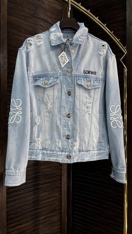 NEW COLLECTION 🪡 Голубая куртка из денима LOEWE • фирменная металлическая фурнитура золотистого цвета ( абсолютно 💯 каждая пуговица бренд с фирменной гравировкой ) • объемная фирменная вышивка 🧵 • все логотипы / бирки 🏷️ • QR - Код 🔐 Все размеры: S M L XL