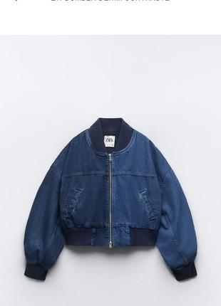 Короткий джинсовый бомбер с круглым вырезом и длинными рукавами. Передние карманы. Комбинация джинсовых тканей. Подходящие ребристые планки. Застежка спереди на металлическую молнию.