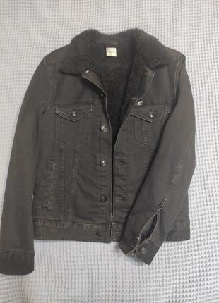 Куртка чорна , зверху джинс всередині штучне хутро, довжина 58; ширина 46; рукав 59