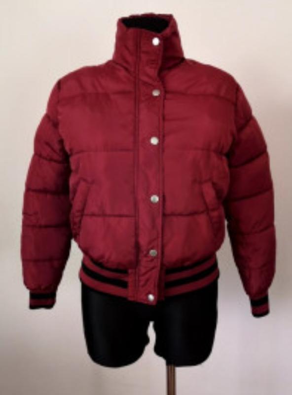 куртка Деми бомпер винного цвета манжеты и низ текстильная плотная резинка, воротник стойка, нюанс на фото, в носке не видно