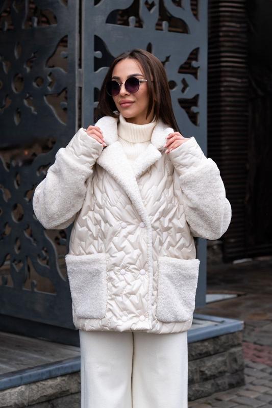 Демисезонная комбинированная куртка Модель: К-308 Размеры: 42-52 Цена: 2650грн Кольори: молоко Тканина: Плащова тканина, Еко-хутро Утеплитель силикон 100 Длина 65 см Длина рукава 74 см от воротника