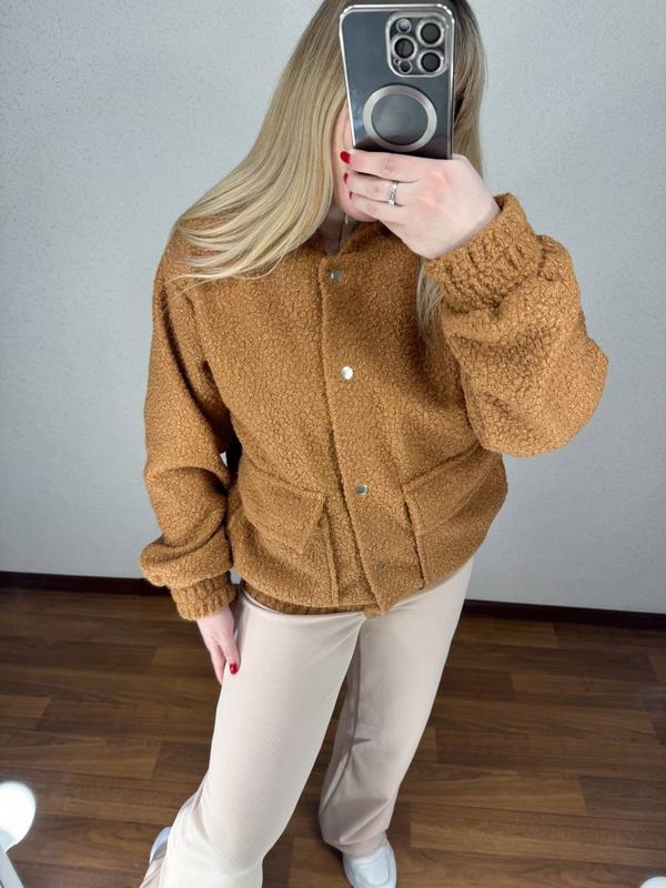 ⬆️ФОТО⬆️ Бомбер Мод. 885 но📍виробник Одеса ▫️Розміри: 42-44, 46-48, 50-52 ▫️Тканина: буклє на підкладці ▫️Кольори: чорний, молочний, кемел, графіт 🛒