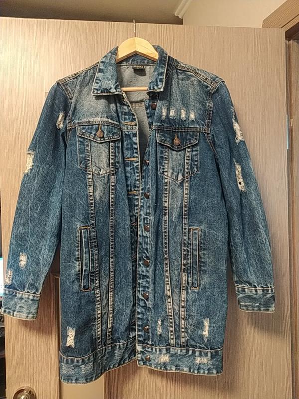 джинсовий піджак, подовжений, стильний з потертостями, на гудзиках, в ідеальному стані