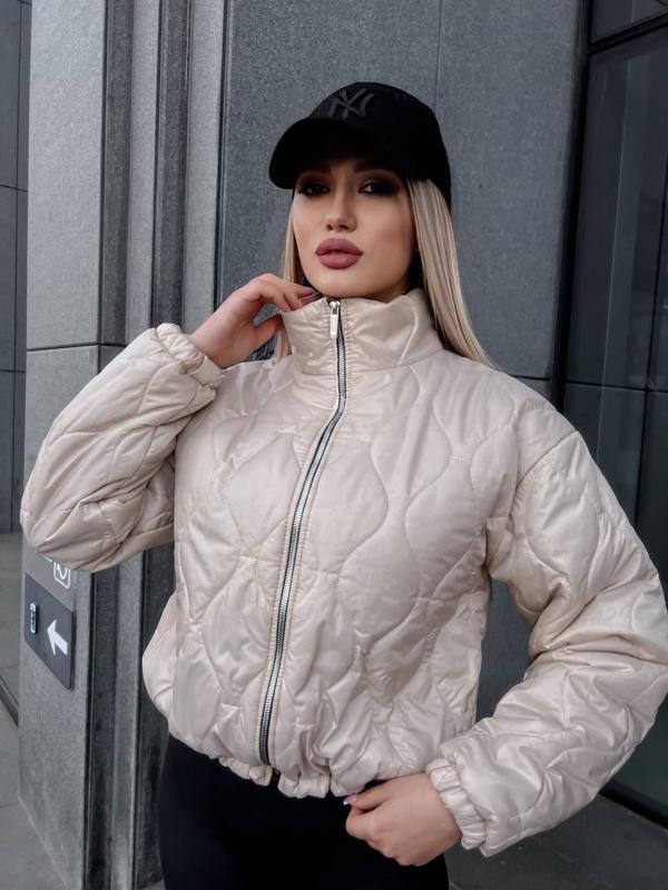 стьобані курточки зі стойкою, на дорогїй змійці, з кишенями на змійці, низ на резинці з затяжкою, рукав на резинці 🌷 Арт. 10453...7.03во Тканина: плащівка, якісна підкладка, силікон 100 Колір: білий, бежевий, чорний Розмір с-м🎀 Об.гр. 90- 100 см. Довж. рукава від шиї 72 см. Довж. куртки 56 см. Розмір л-хл🎀 Об гр 100-110 см. Довж. рукава від шиї 73 см. Довж. куртки 57 см.