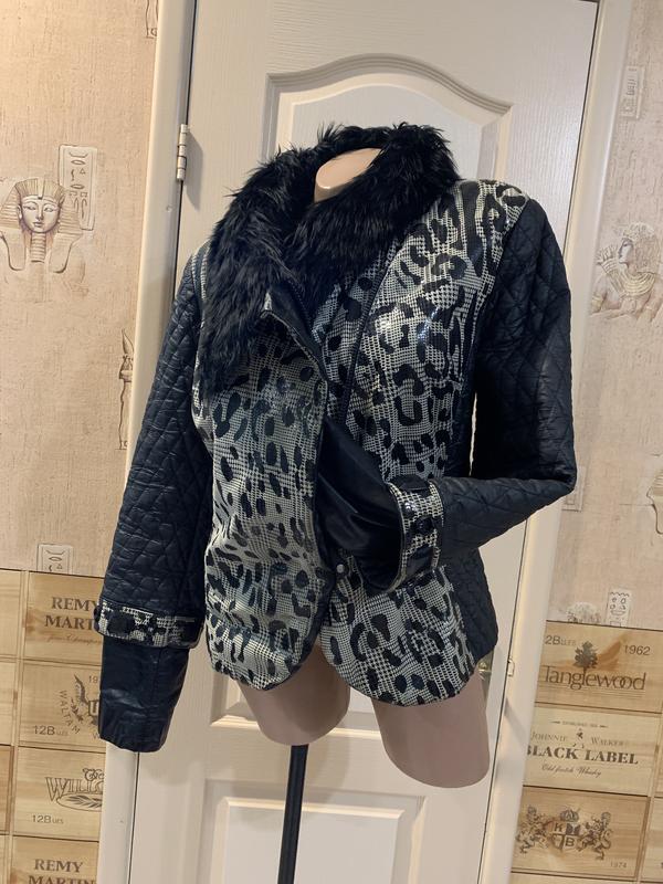 Куртка жакет отличного качества, красивый крой, цвет черный , кожа натуральная мягкая с лазерным напылением под питона , воротник из натурального меха, молния с двумя бегунками , возле молнии вшиты магниты внизу и вверху . Оригинал . В очень хорошем состоянии. Пог 55 рукав 65 длина 57