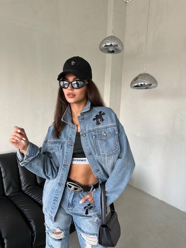Джинсовая куртка джинсовка оверсайз Chrome hearts One size-2 шт