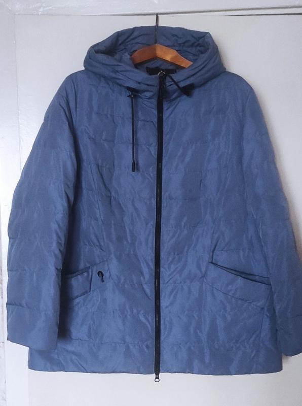 Куртка в синьо-сірому кольорі з капюшоном , довжина 75 см, довжина рукава 63 см, НОГ61 см,НОТ 59 см, знизу можна затягнути по ширині, блискавка працює,