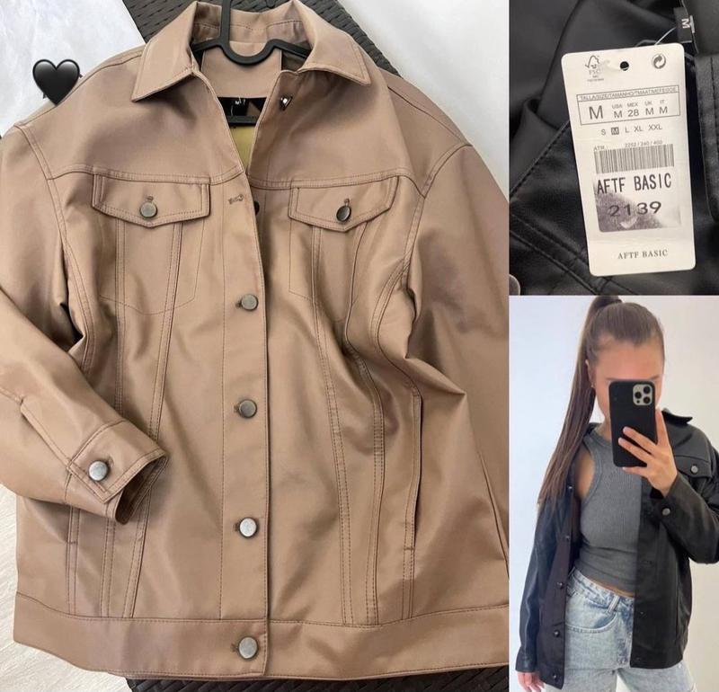 Куртка з якісної еко шкіри. Виробник: Туреччина. Кольори: беж, чорний. Розміри: М, Л, ХЛ. ПОГ 51, 54, 57см, довжина 69, 70, 71см, рукав від коміра 71см.