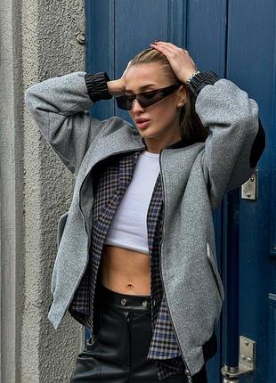 Бомбер ”Brussel” ✅материал - кашемир (60% полиэстер, 40% шерсть), на подкладе ✅описание модели - рабочие вместительные карманы, oversized покроя, плечо спущенное, вставки из экокожи, фурнитура - металлическая ✅размер единственный 42-44 ✅цвета модели - черный, серый Цена 2400грн (✔️можно заказать 40 46 48 50 52 размер, ждать 2-6 дней, +200)