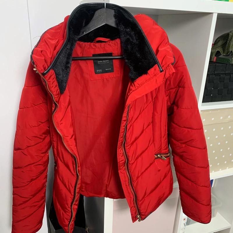 Коротка куртка ZARA. Куртка с высоким воротником (скрытый капюшон). Два боковых кармана. Застежка-молния спереди. Цвет темно красный. Отличное качество. Длина по спинке 58 см