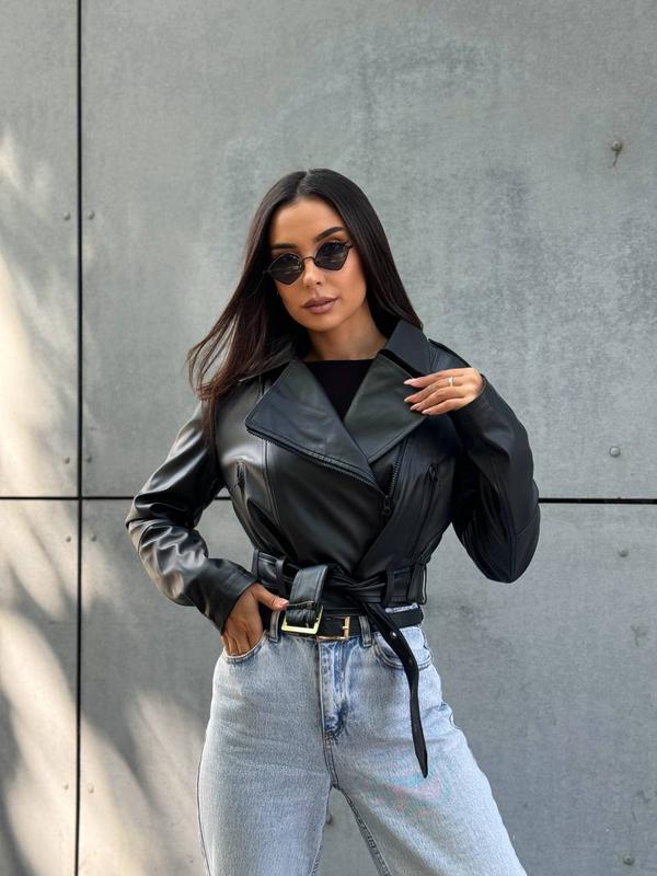 Куртка-косуха Мод М487 Эта короткая косуха - идеальный выбор для создания модного, стильного и красивого образа. Изготовлена из высококачественной экокожи, она не только выглядит как натуральная кожа, но также является экологически чистой и этичной альтернативой. Подкладка из саржи обеспечивает комфорт. Эта косуха станет отличным дополнением к вашему гардеробу и придаст вам уверенности и стиля в любой ситуации. Ткань: экокожа Подкладка: саржа Размер: 42-46, 48-50 Производство: Украина