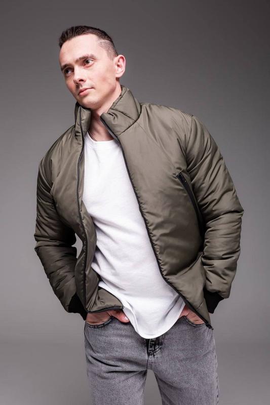 Артикул: 1681 Утепленная мужская куртка бомбер хаки Цена 1500грн Размеры: S,M,L,XL <unk> на фото L 188 см рост 85 кг вес Материал: полиэстер. Боковые карманы на застежках, молнии прорезиненные, есть внутренний карман. Манжетная резинка на поясе и рукавах. Воротник - стойка. Утеплитель - синтепон 150 плотности. 🧷 Производитель: Украина 🇺🇦