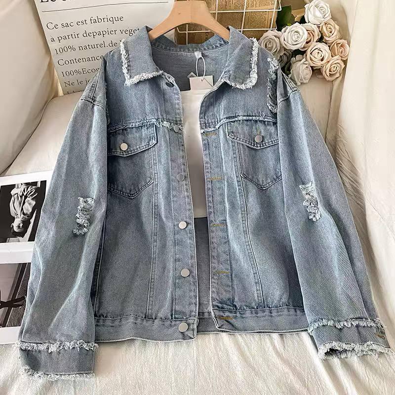 Стильна рвана джинсова куртка😍 Вечная классика❤️ Мод 2187 Размер: На бирке М (оверсайз) Тканина: джинс коттон
