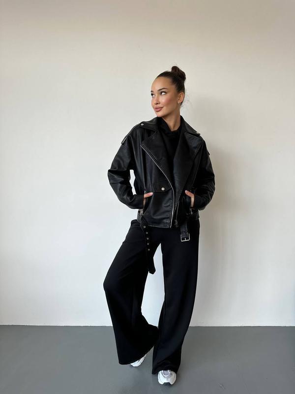 В наявності 💣 ✔️Куртка (осінь,весна) ✔️Мод.708 ✔️Розмір:42-46 oversized,48-52 oversized ✔️Тканина: еко шкіра ✔️Колір: чорний ✔️Ціна: 1320 грн 🤍Жіноча куртка (осінь,весна)з якісної еко шкіри на підкладці 🕊️