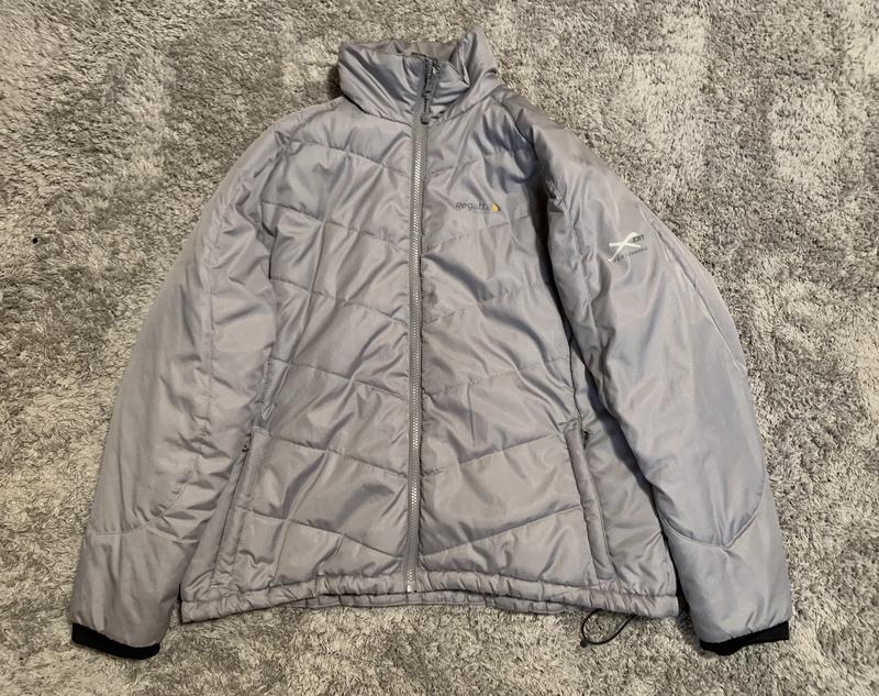 Куртка світло сірого кольору від regatta, вказано size-20,eur-46, xxxl. Сяде добре і на Л Півобхват грудей 63 см, бедра півобхват 60 см, низ на резиночці Довжина 63см Рукав 66см, без капішона Наповнювач синтепон 100%поліестер. Підійде на весна/осінь.