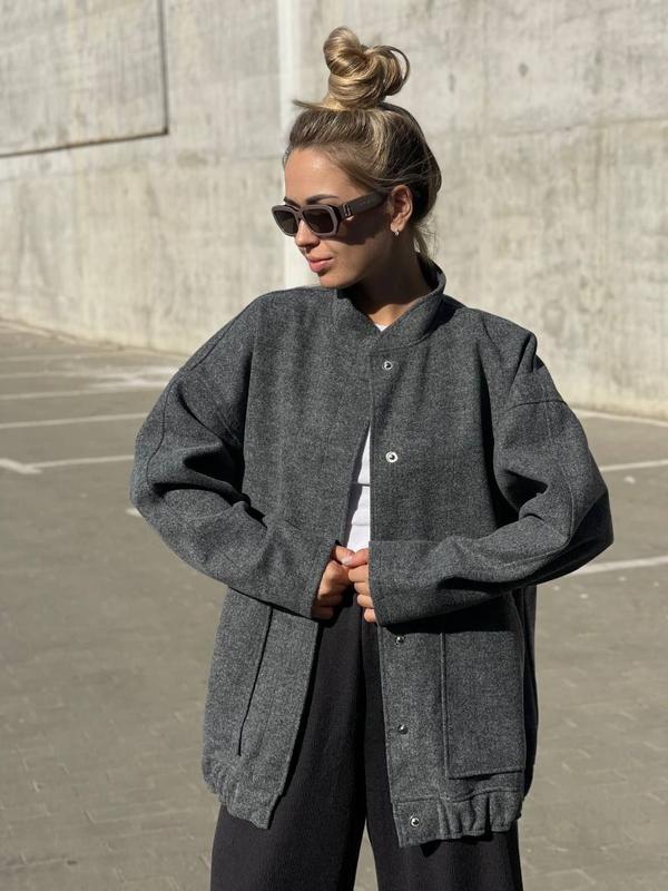 😍новинка😍 Бомбер Арт.0495 Ткань: пальтовой кашемир на трикотажной основе Размер:42-46 Цвет:графит, розовый, шоколад в клетку Бомбер oversize. Застегивается на кнопки. По низу манжет на резинці. Качество🔝🔥muur