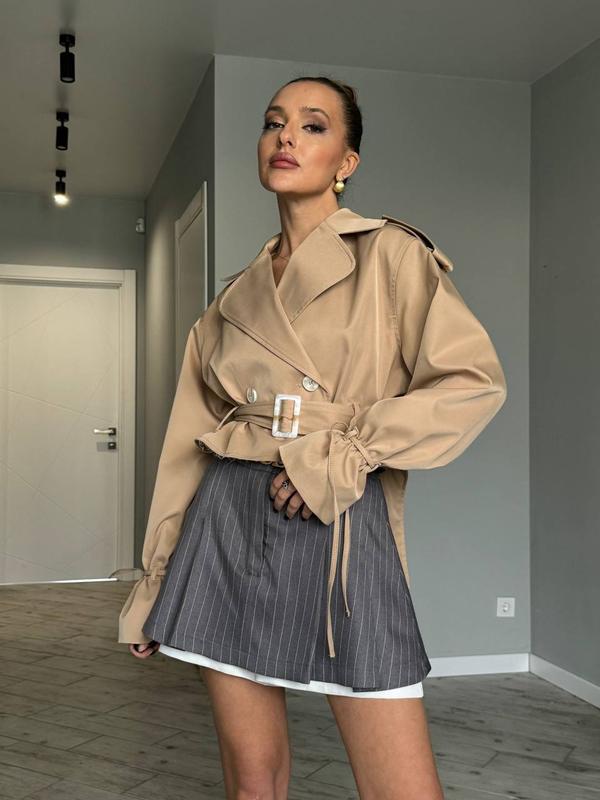 Новая модель - Тренч Мини 😍😍😍 Тренч комфортный и стильный. Идеально садится на разные типы фигур 💗 ✔️Материал: плащевой коттон с влагоотталкивающими свойствами Температурный режим: от 0° до +20°🌦 ✔️Длина - 48 см.