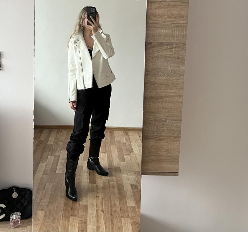 Стильная косуха Очень качественная, плотная эко-кожа Стан идеален без нюансов Замеры Длина-58 П.о.г-50 Плечи-39 Рукав-62 Низ-46