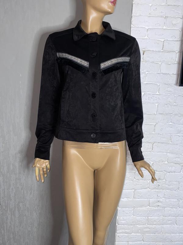 Куртка под замш крой в виде джинсовки с бахромой Lofty Manner, XS. Длина 55см, рукав 60,5см, плечи 41,5см, ПОГ 46см, ПОБ 47см
