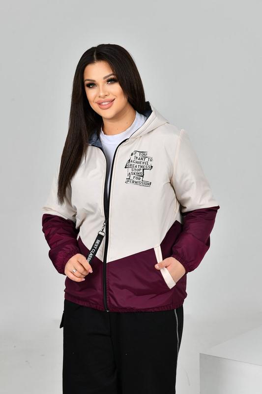 Куртка Артикул : 3548 ⁃ Розміри: 1(48-50); 2(52-54); 3(56-58) ⁃ Довжина по спинці: 65,66,67см ⁃ Рукав: довгий ⁃ Матеріал: плащова тканина «Канада», щільно паяний підклад плотністю 150 г/м² ⁃ Утеплювач: паяний підклад 150 г/м² ⁃ Кольори: синій з джинсовим, чорний з червоним, марсала з нюдовим Куртка на паяному синтепоні. Виріб вільного силуету, виконано з двох тонів, з капюшоном. Оздоблено принтованим надписом, має дві кишені з обох боків, застібка на блискавці, рукав на резинці. Заміри виробу: ⁃ 1 р/р: О.Грудей 112 О.Талії 112 О.Стегон 112 ⁃ 2 р/р: О.Грудей 120 О.Талії 120 О.Стегон 120 ⁃ 3 р/р: О.Грудей 128 О.Талії 128 О.Стегон 128 💃Ціна 840 грн 🔥 НАКЛАДЕНИЙ ПЛАТІЖ ПО ПЕРЕДОПЛАТІ 150-200 грн і ЛИШЕ НОВОЮ ПОШТОЮ❗️❗️❗️❗️ ☝️Відправки 3 рази на тиждень . ▪️- Нова пошта відправки 3 рази на тиждень. ▪️- Укр пошта 2 -3 рази на тиждень ( доплата за пакування від 15 до 35 грн в залежності від об'єму) ◼️Термін відправки товару 1-7 днів. 💲Оплата: ◼️ Оплата повна на картку ⬛️ НАЛОЖКА по ПЕРЕДОПЛАТІ 200 грн за 1 річ. За дві речі передоплата 300 грн. 🔔Якщо клієнт не прийшов на пошту, або відмовився від посилки- передоплата не повертається🔺🔺🔺 По наложкам всі питання вирішуються на пошті. Огляд на брак,колір і тд. ✅ Стосовно обміну і повернення кожна позиція обговорюється окремо