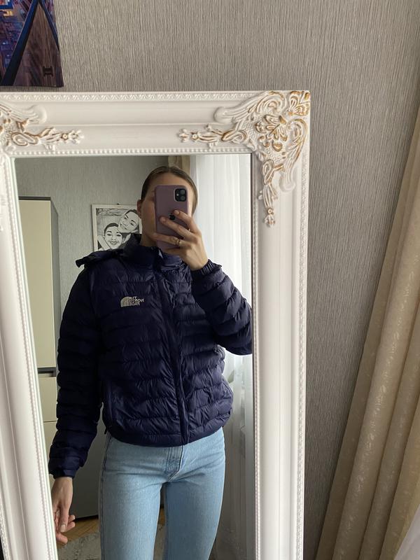 Дуже класна куртка від the north face темно-синього кольору, стан чудовий, є тільки де-не-де ледь збитий наповнювач, це видно тільки зсередини,розмір вказано м, заміри по запиту надам 😉 Капішон на замку, знизу регулюється куліскою, можна зробити коротенькою, рукави теж регулюються по повноті руки, все продумано до дрібниць 🙌🏻