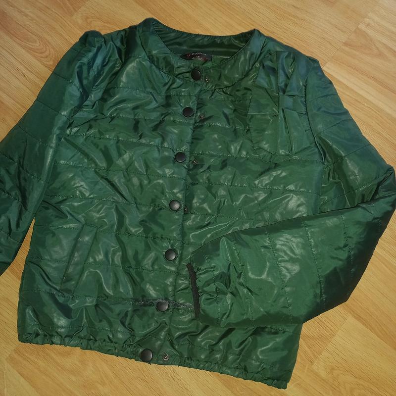 курточка модного цвета, темнозеленого, без дефектов. очень стильно смотрится на теле Пог 47см, пот 45см, длина по спинке 54см, длина рукава от плеча 62см, плечи 35см, полуобхват низа 45см там небольшая резинка тянется к 49см