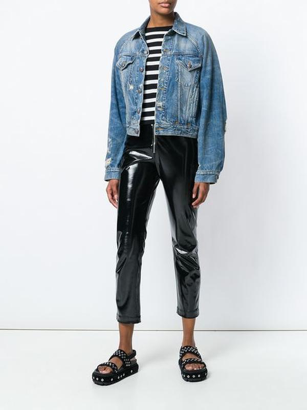 Укороченная джинсовая куртка с потертостями на овчине river island