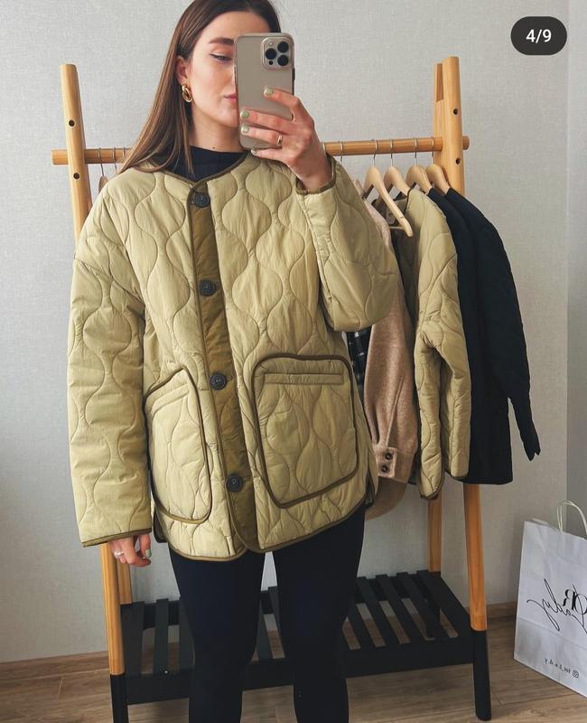 Крутезна стьобанна куртка pull&bear вільною крою ,оливкового кольору, розмір M довжина 78/ пог 66/рукав від горла 76