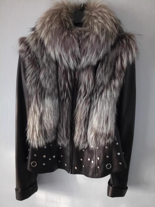 Фирменная куртка\жилет натуральная кожа с мехом чернобурки