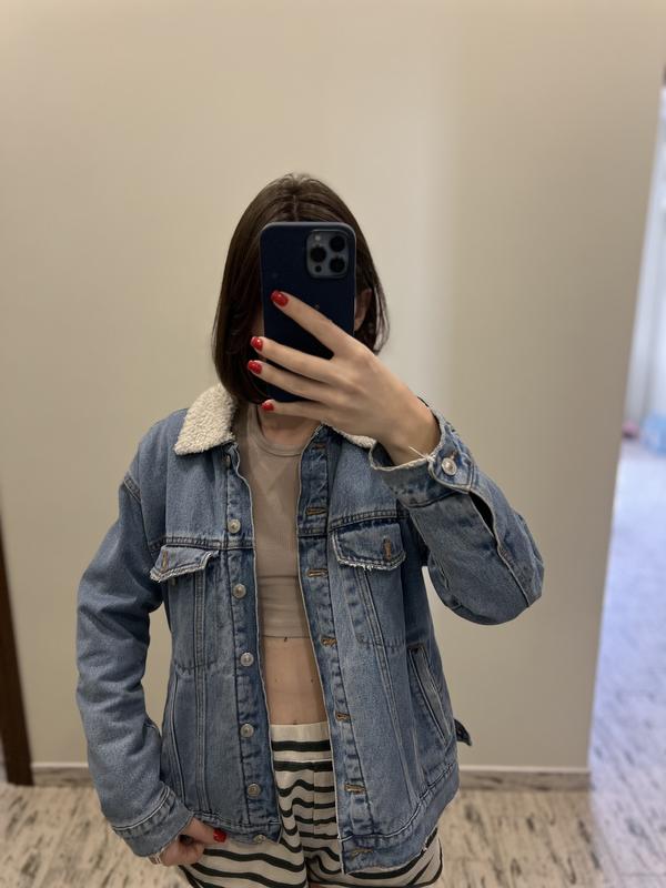 Классная зимняя джинсовая куртка. Два кармана спереди и два по бокам. Подойдет на осень/весну. Длинный рукав. Штучне хутро