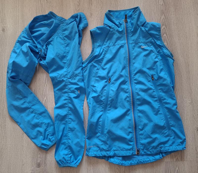 Storm-fit XS by Nike Голубая безрукавка + съемные рукава Замеры, см: ПОГ - 44 плечи - 33 высота - 61 рукав к воротничку - 75 рукав к подмышке - 60 В наличии вещи для походов и занятий спортом, смотрите другие объявления. После платью НЕ присылаю! На Шкафы торга НЕТ!