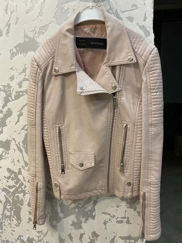 Кожаная куртка пудрового цвета Размер С Дефект на останньому фото