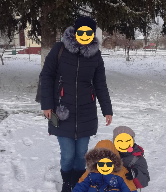 Очень теплая зимняя куртка. Наполнитель холлофайбер. Не нужно бояться стирки, ведет себя идеально. Именно главное, что ткань не оставляет следов от воды и др. На капюшон пристегивается мех (искусственный), такой же как помпончик на фото. Капюшон не снимается. Два активных кармана, которые застегиваются на молнию. Основная молния двойная, можно расстегивать и снизу. На рукавах есть манжеты. Подклад целый, куртка почти новая, носилась всего один сезон.