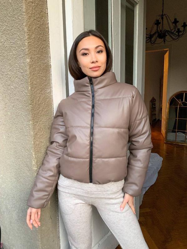 Куртка эко кожа # 5 Размеры 42-44, 46-48 Ткань эко кожа матовая черная коричневая беж горчица Наполнитель силикон 150 Длина изделия: 42-44 р - 51 см, длина рукава 62 см 46-48 р - 52 см, длина рукава 63 см (пар)
