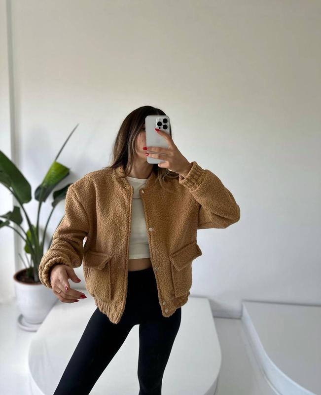 🤩 НОВИНКА 🤩 Бомбер Мод. 885 Цена: 950 грн Размеры: 42-44, 46-48, 50-52 Ткань: букле на подкладке Цвета: черный, белый, кемел, графит Классный вариант на весну, который стильно дополнит ваш образ. Качество 💯 🤩