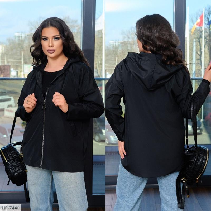 Куртка HF-7440 Размеры: 48-50, 52-54, 56-58 Ткань: плащевка Эмми, подкладочная трикотажная ткань Цвета: черный, серый, капучино, фреза Длина батал: * кофта (спереду / ззаду) - 75/82 см., рукав від горловини - 74 см. * Рост модели - 171 см. * параметры модели на фото ог-от -ос: 108-80-112, одетая в р. 48-50 Ориентировочные параметры фигуры: Р. 48-50 ог-от -ос: 108-86-114 Р. 52-54 ог-от -ос: 116-96-122 Р. 56-58 ог-от -ос: 124-106-130