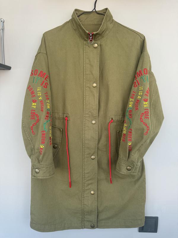 Легкая коттоновая куртка/парка с вышитыми рукавами размер s Длина рукава 56 приспущен Длина изделия 90