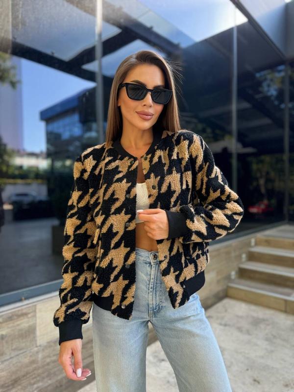 Бомбер на подкладке Код модели: 182 Тканина: барашка Цвет: белый леопард, коричневый леопард, гусиная лапка Размер: 42-44, 46-48 Цена : 1150 грн Длина: 42-44 - 57 см , 46-48 - 58 см Объем груди : 42-44 - 98 см 46-48 - 106 см Рукав : 42-44 - 62 см , 46-48 - 63 см