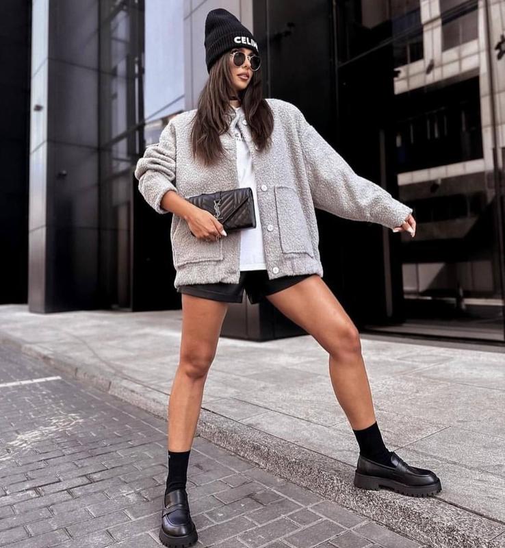 Бомбер Модель es 5475 Размер 42-46,48-52 Цвет беж, серый и черный Тканина баранчик Без подклада