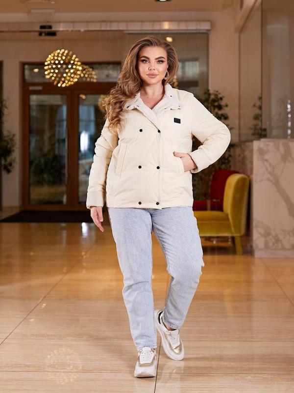 ⬆️Куртка демисезонная Модель: 24004❤️26 Размеры : 50-52, 54-56, 58-60 Ткань: Плащевка Эмми, на подкладке, наполнитель силикон 100. Вставки та манжет тканина вельвет. Цвета: черный, молочный, пудровый, фисташковый Размеры: 50- 52, 54-56, 58-60 Объем груди : 112, 120, 128 Объем бёдер: 112, 120, 128 Длина по спинке: 67, 68, 69 Длина рукава : манжет, должно быть, регулировать